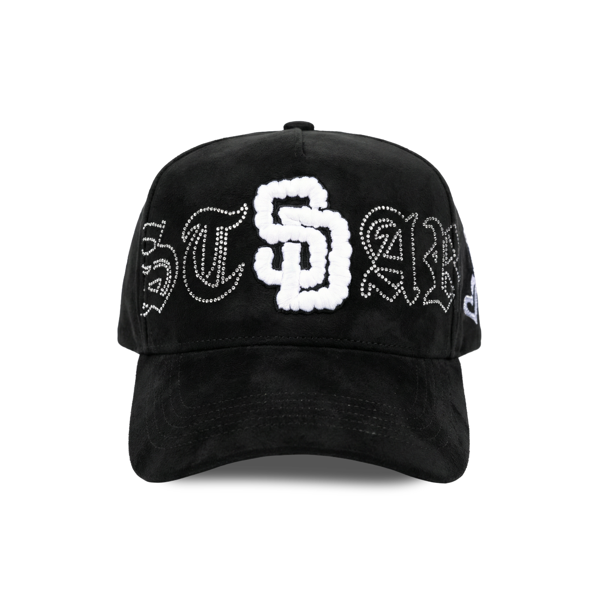 - Hand-applied rhinestone detailing